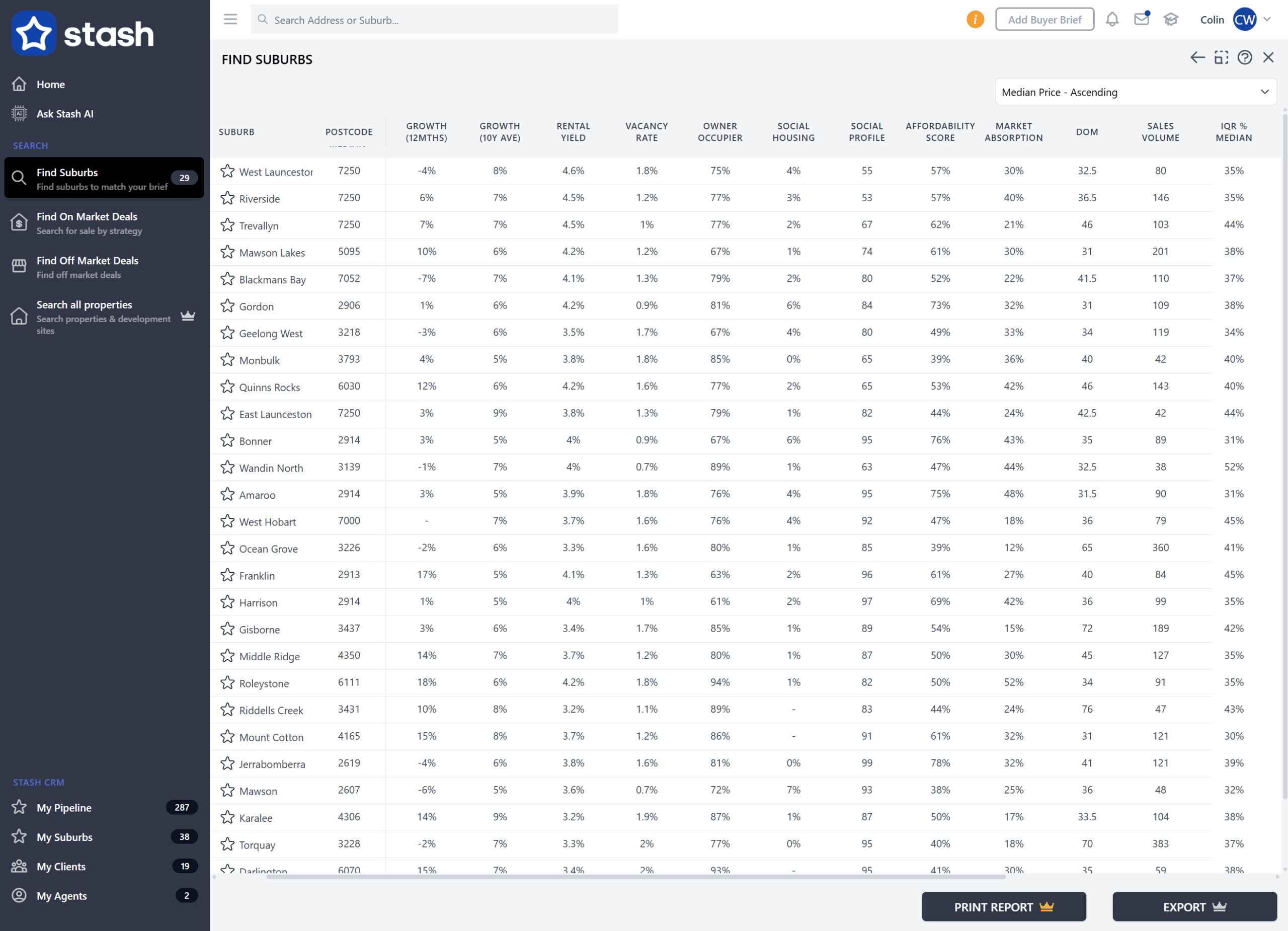 With Stash, you can isolate every suburb in the country that has a wider IQR which can be a great way to find renovator suburbs.