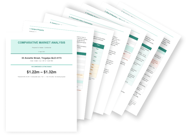 Show vendors exactly where their property sits, what drives value, and how to create competition. From pricing to reserve to campaign strategy, it’s all structured and ready to present.
